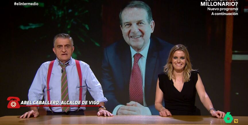 Como es habitual, la visita de Andrea Ropero a El Intermedio viene acompañada de un baño de realidad. Aunque, en esta ocasión, no va dirigida a alguno de los miembros del programa sino al experto energético Jorge Morales. Además, la persona encargada del baño no es otro que 'Abel Caballero, alcalde de Vigo'.