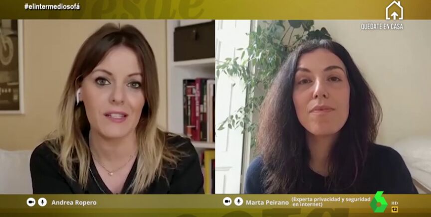 Andrea Ropero ha entrevistado a través de una videollamada en El Intermedio a Marta Peirano, experta en seguridad y privacidad en Internet, sobre el peligro de que se naturalicen las herramientas tecnológicas con las que cuenta el Gobierno para supervisar las actuaciones de los ciudadanos en plena pandemia.