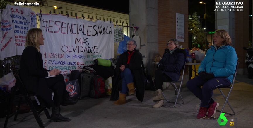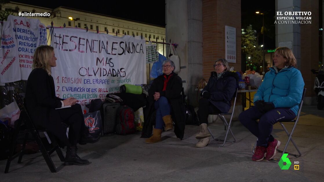Andrea Ropero habla con Eva, Carmen y Teresa, trabajadoras sociosanitarias que llevan más de dos semanas acampando frente a la sede del Ministerio para denunciar sus condiciones laborales y para pedir mejoras sustanciales. Han contado cómo es su día a día y las secuelas que sufren.