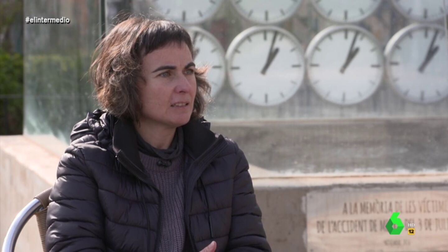 Andrea Ropero entrevista en El Intermedio a Ana Esplugues, una de las víctimas del accidente del metro de Valencia. Ese 3 de julio de 2006, la joven iba en el primer vagón, justo detrás del maquinista: "Iba con una compañera de trabajo en el vagón, recuerdo cómo volcó y sufrí un golpe muy grande de esos en los que te falta el aire".