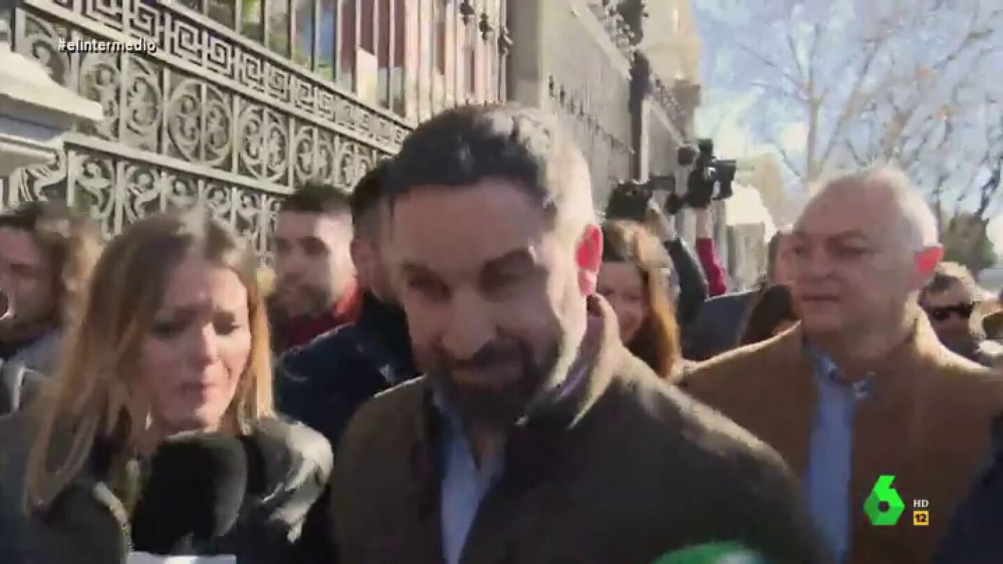 Entre empujones, el líder de la formación de extrema derecha pregunta a la reportera de El Intermedio "hasta dónde le va a acompañar". Tras ello, Andrea Ropero responde que "hasta donde sea necesario" y Abascal le asegura que entonces será "muy lejos".