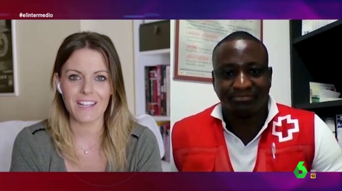 Félix Sesay, refugiado de Sierra Leona, llegó con 21 años a Valencia a bordo del Aquarius. Ahora trabaja como voluntario de Cruz Roja luchando contra la pandemia de COVID-19. "Trabajo con Protección Civil y reparto comida en 25 domicilios. También ayudo en la sede de Cruz Roja", explica Félix a Andrea Ropero en El Intermedio.
