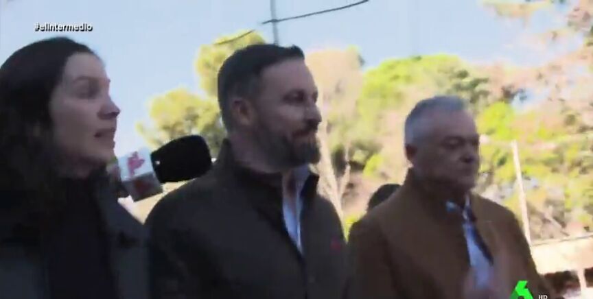 "Estoy bastante más en forma que usted, gracias", así responde Andrea Ropero al líder de Vox después de que Santiago Abascal intentara evitar responder a sus preguntas a base de carreras y empujones de la comitiva.
