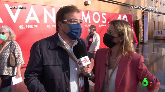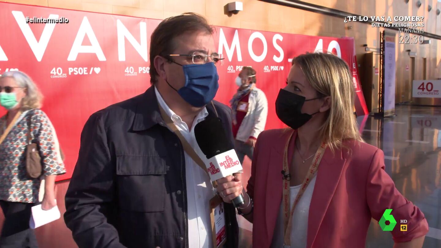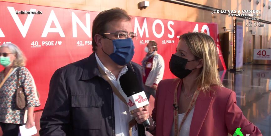 Andrea Ropero se adentra en el 40º Congreso del PSOE para hablar con las caras más destacadas del partido y los ministros socialistas sobre las polémicas que envuelven a la formación. Por ejemplo, la periodista pregunta a Guillermo Fernández Vara, presidente de Extremadura, sobre el fichaje de Antonio Miguel Carmona por Iberdrola. "¿Está en algún sitio prohibido que los socialistas puedan trabajar?", pregunta el extremeño a Ropero, que le recuerda tajante: "Ustedes critican mucho las puertas giratorias pero luego de repente le vemos de vicepresidente".