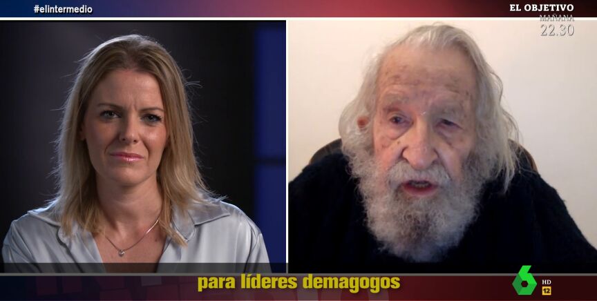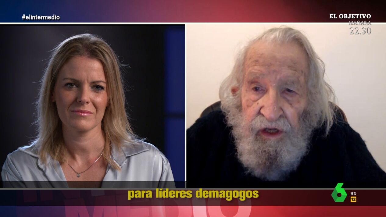 Andrea Ropero ha hablado con el eminente lingüista, filósofo y analista Noam Chomsky que, a sus 93 años, sigue siendo una de las voces más autorizadas a la hora de hablar de los temas más candentes de la actualidad. En esta entrevista destaca que, a pesar de sus retiradas de Afganistán o Irak, Estados Unidos "sigue siendo el gendarme del mundo", lo que se nota en su postura en la guerra en Ucrania. "Cuanto más continúe la guerra y más fracase Rusia, mayor será la posibilidad de una escalada", afirma el escritor, que cree que si llega el momento de pensar en un ataque nuclear de Rusia "el mundo estará en serio peligro".