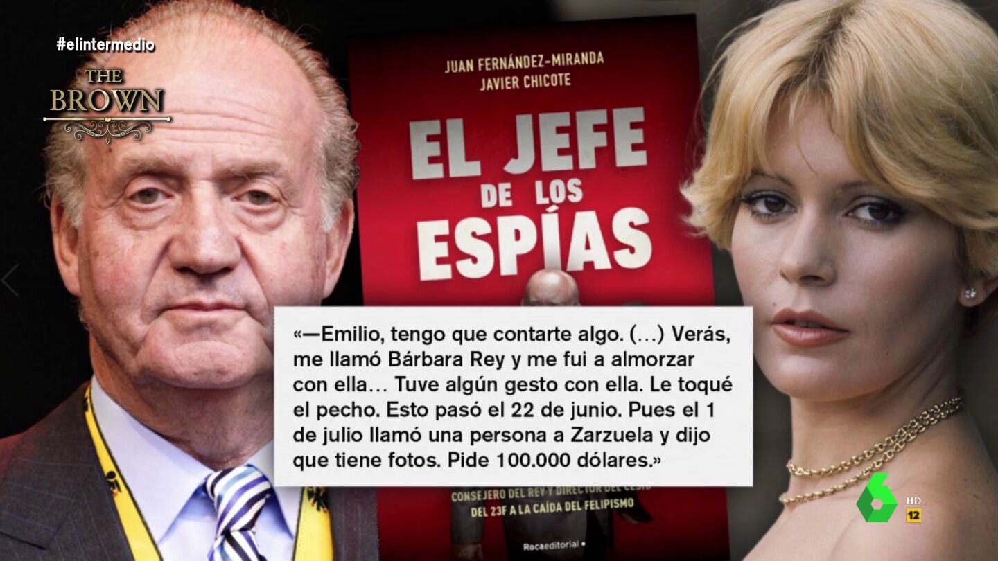 El Intermedio recuerda las conversaciones que tuvo el rey emérito con Emilio Alonso Manglano en las que confesaba un chantaje por parte de la exvedette. Así lo cuenta el exconsejero del rey en el libro 'El jefe de los espías'.