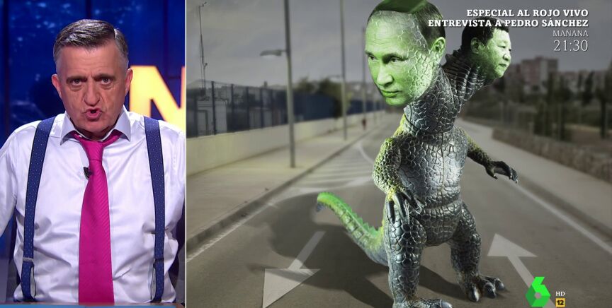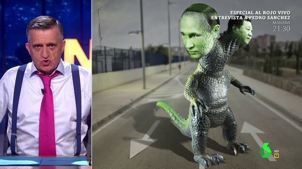 "El enemigo ya no es solo Putin, también es el presidente chino", recalca El Gran Wyoming desde el plató de El Intermedio, y espera que ambos mandatarios no se junten porque el mundo se enfrentaría "al enemigo definitivo": "Un gigante mitad ruso, mitad chino capaz de hacer temblar al mundo entero". Puedes ver cómo se lo imagina, en el vídeo principal de la noticia.
