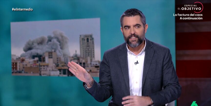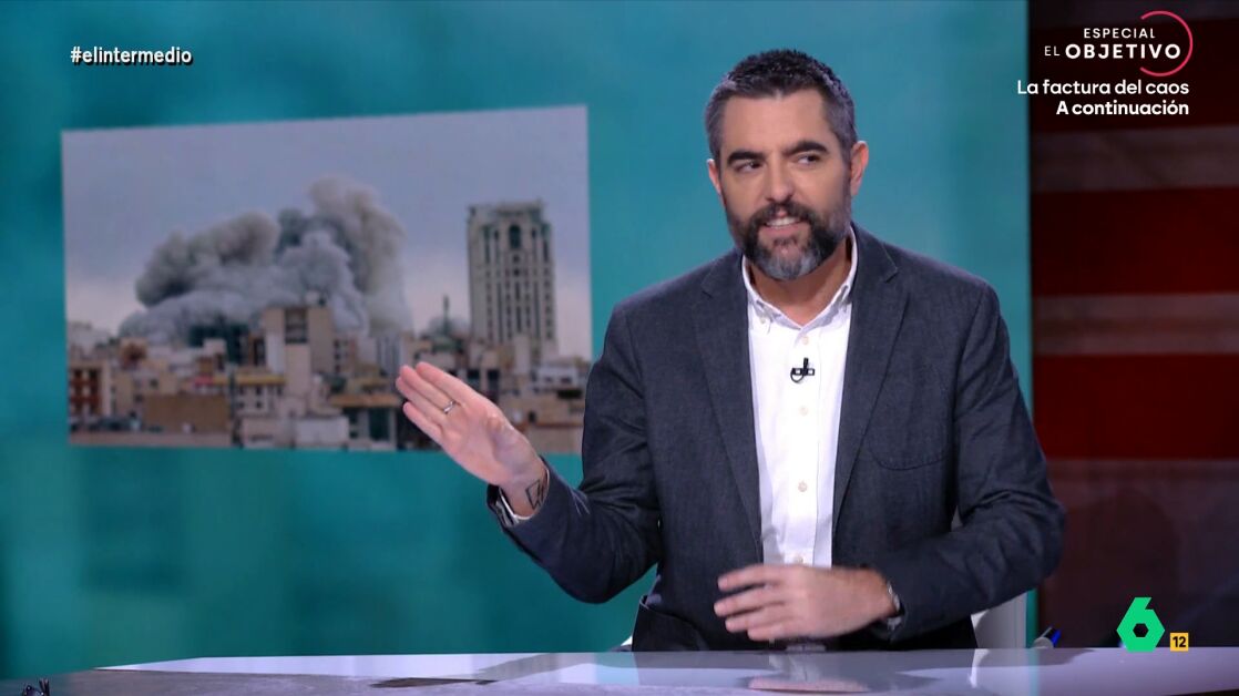 Dani Mateo aparece en el plató de El Intermedio tras un análisis de El Gran Wyoming sobre José María Aznar relacionado con la guerra de Irán. "No sé por qué le tienes esa manía a Aznar", ironiza Dani Mateo, que destaca que le "invita a reflexionar": "¿Te das cuenta de las cosas feas que dices?, es por el odio".