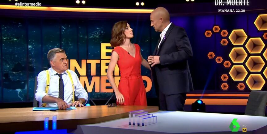 Así reacciona 'Rubiales' cuando Cristina Gallego le echa de El Intermedio: "Chata, lo primero, dos besos"