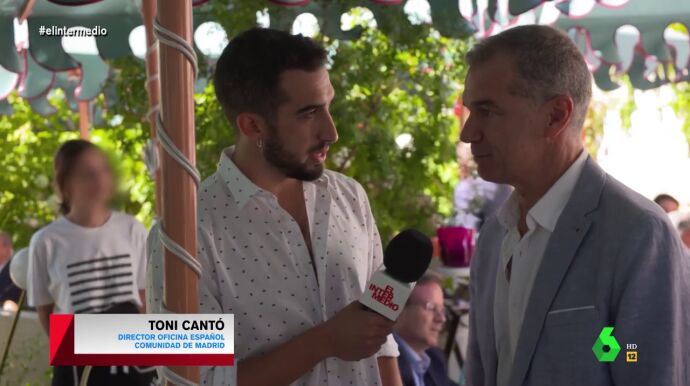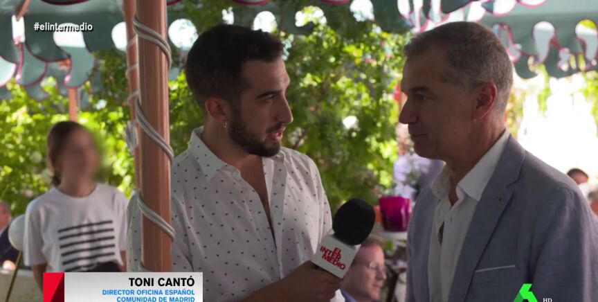 "Has venido aquí por Ayuso", le dijo Isma Juárez a Toni Cantó, quien contestó que había ido "por el president (de Tabarnia), Albert Boadella, que tiene un gran poder de convocatoria y todos la respetamos mucho". No obstante, el reportero del programa respondió: "Pero tú tienes que venir a los actos de Ayuso para que te dé cosillas".