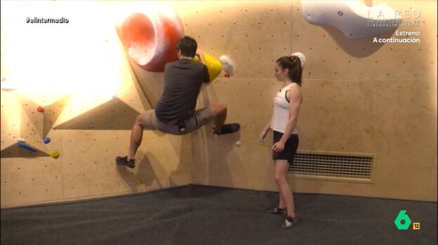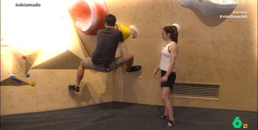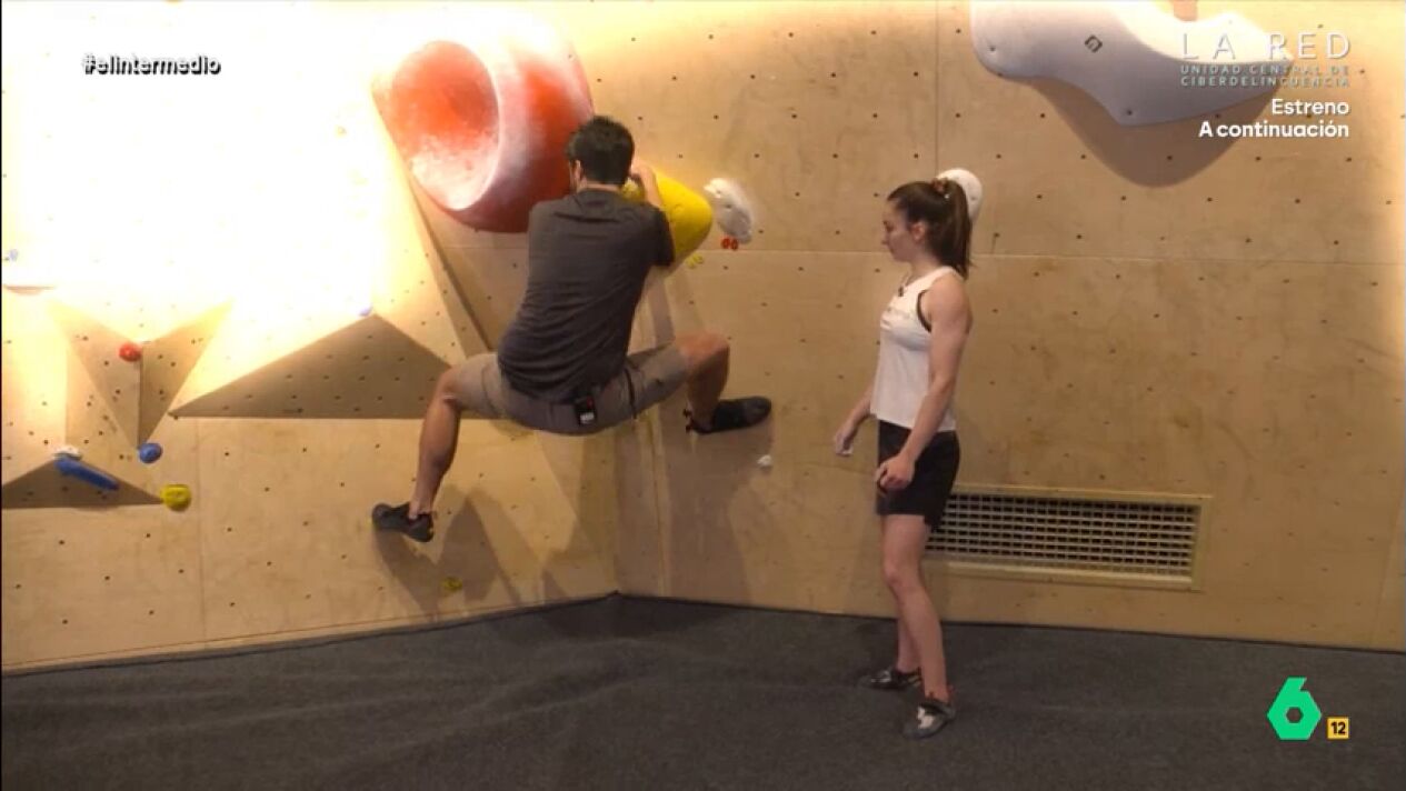 El reportero visita un rocódromo para iniciarse en este deporte. Para ello, cuenta con una profesora de lujo: Iziar Martínez, campeona de España de escalada. Pero, a pesar de sus explicaciones, Juárez no ha tenido mucho éxito.