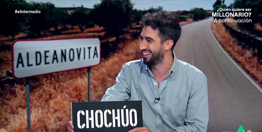 El reportero ha visitado Aldeanovita para conocer la iniciativa ideada para evitar que se pierdan palabras en desuso. Una de estas palabras es 'chochúo', que ha traído hasta El Intermedio como regalo para el programa.