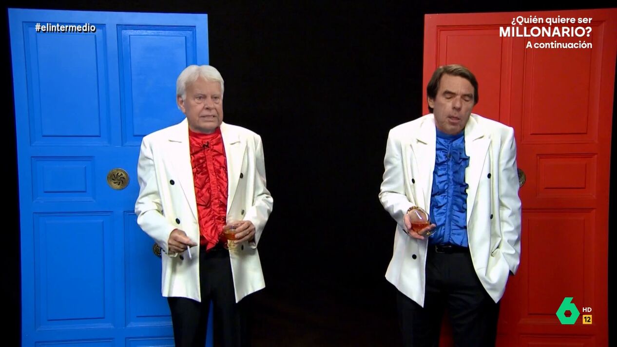 'Aznarito y Felipón' vuelven a El Intermedio, en esta ocasión para comentar la situación que atraviesan los agricultores que, según comenta el expresidente socialista en este vídeo, "les tienen ahí rellenando papeles en vez de sembrando patatas".