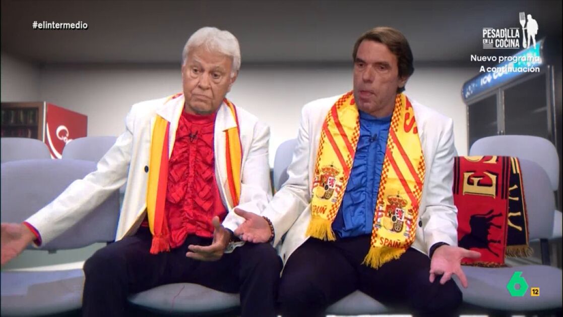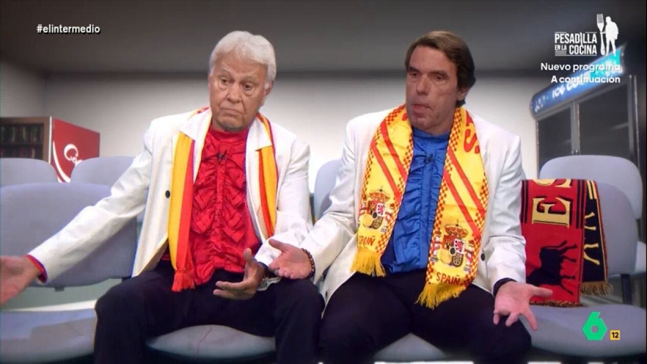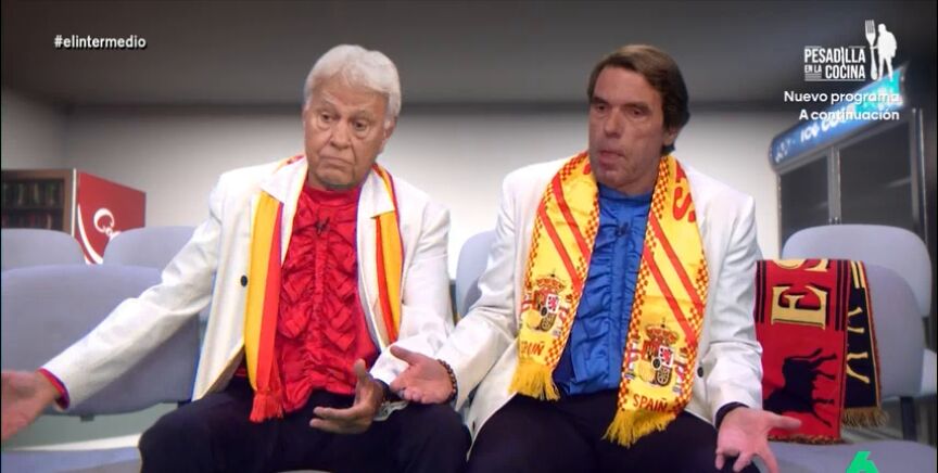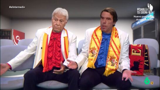 Wyoming y Dani Mateo se convierten una vez más en 'Aznarito y Felipón' y, en esta ocasión, se trasladan hasta un estadio de fútbol. "No veías un palco así desde que estabas en la Moncloa", le comenta Aznarito. Felipón, por su parte, asegura que "el fútbol no es lo que era".
