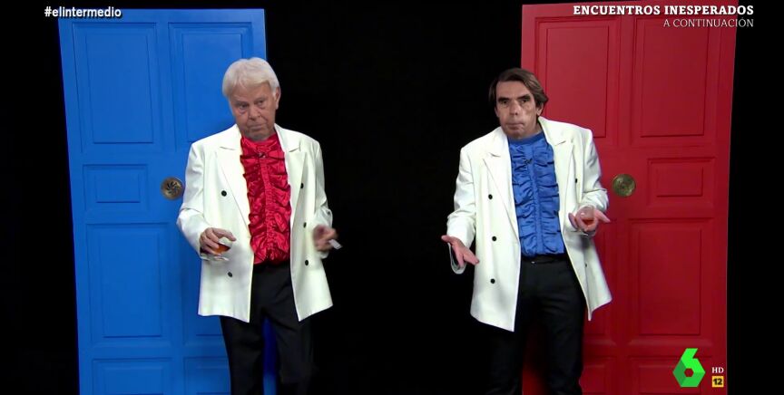'Aznarito y Felipón' vuelven a coincidir en el plató de El Intermedio. Los personajes interpretados por Dani Mateo y El Gran Wyoming discuten sobre el feminismo y el importante papel de la mujer en el gobierno de Pedro Sánchez, un hecho que no acaba de convencer a los dos 'expresidentes'. "Pero, ¡cómo da 14 ministerios a las mujeres!", exclama Felipón, y recuerda su "legislatura de la testosterona", en la que había "16 tiarracos de ministros". "Eso sí era paridad", recalca Aznarito, porque había "16 'pares' de huevos'".