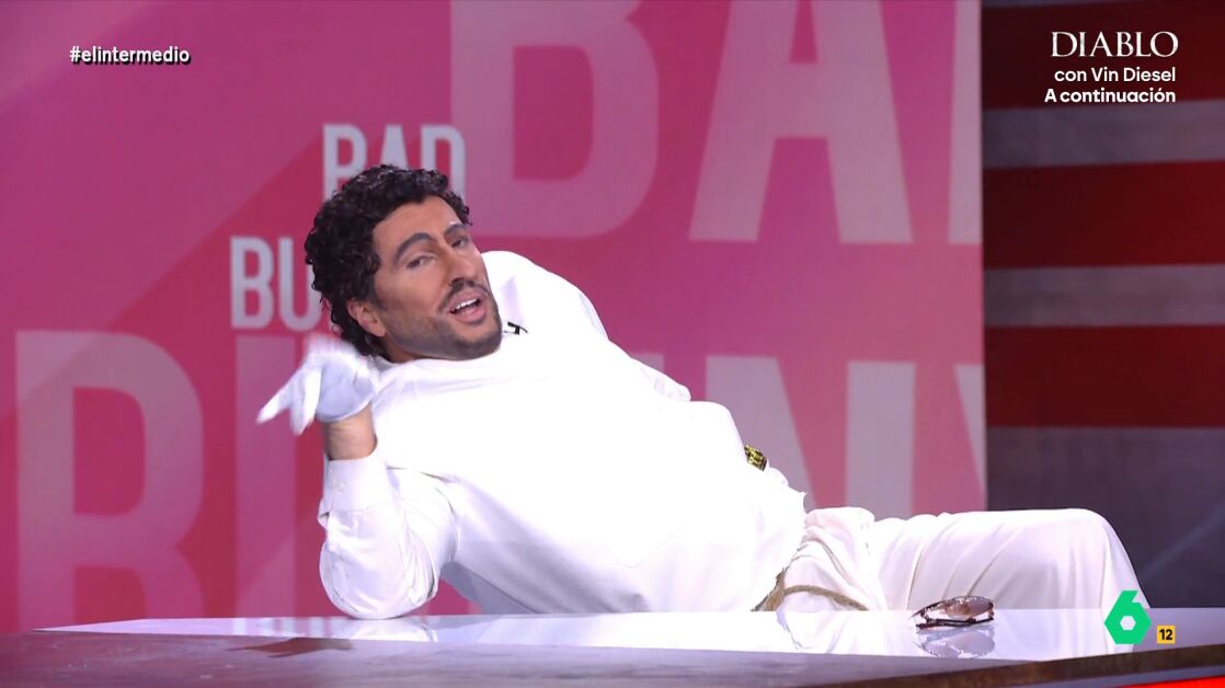 Raúl Pérez lleva hasta el plató de El Intermedio a Bad Bunny, que tras su espectáculo en la Super Bowl dedica en este vídeo sus grandes éxitos a Donald Trump, Pedro Sánchez, Alberto Núñez Feijóo y Santiago Abascal.