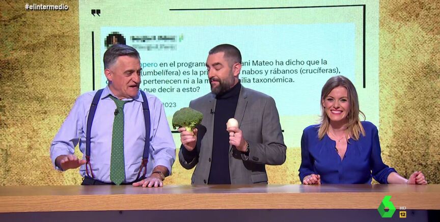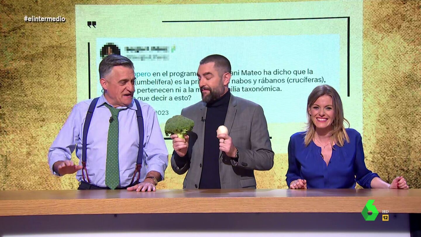 Una zanahoria y un nabo "no pertenecen a la misma familia taxonómica". Así se lo hacía saber un espectador a Dani Mateo en este 'baño de realidad' de Andrea Ropero. La respuesta del colaborador y la divertida reacción de Wyoming, en este vídeo.