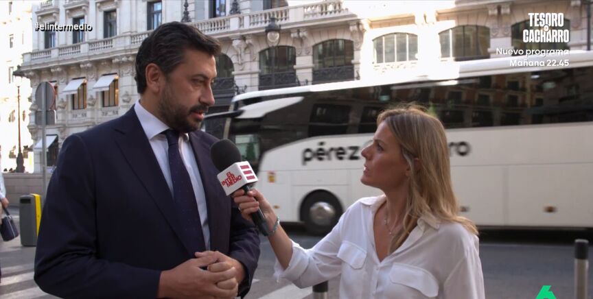 La reportera tuvo la oportunidad de hablar con Carlos Díaz-Pache, portavoz del PP en la Asamblea de Madrid, que volvía a rechazar la idea de que hubiera un genocidio en Gaza: "Curioso genocidio en el que Israel avisa porque intenta causar ningún daño a la población civil", argumentaba.