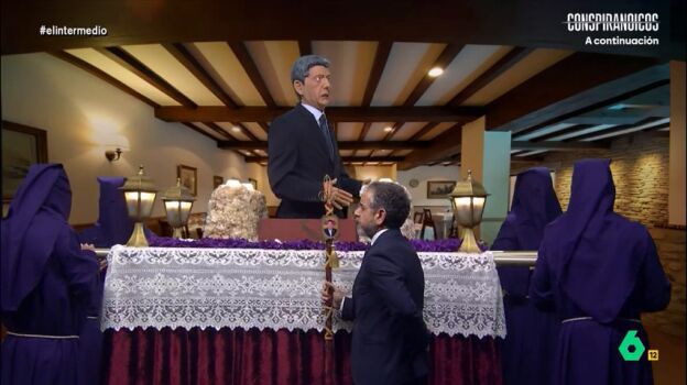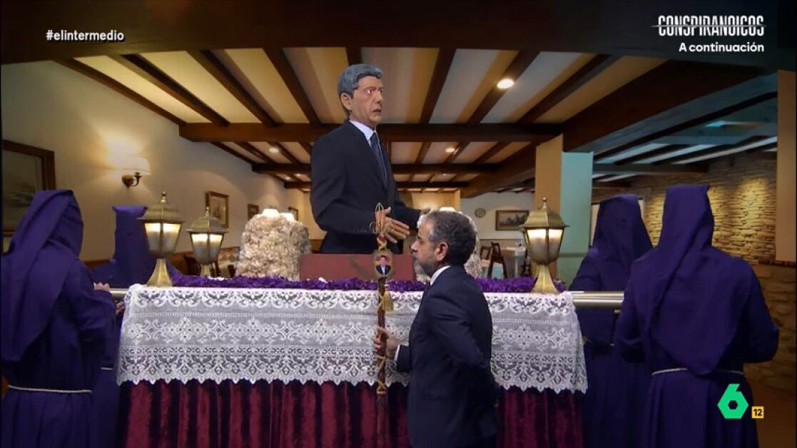 El presidente de la Generalitat Valenciana se convierte en el protagonista de la Semana Santa de El Intermedio y la Hermandad del Santo Tardeo Valenciano hace su primera estación de penitencia es "ese sacrosanto lugar de esparcimiento".