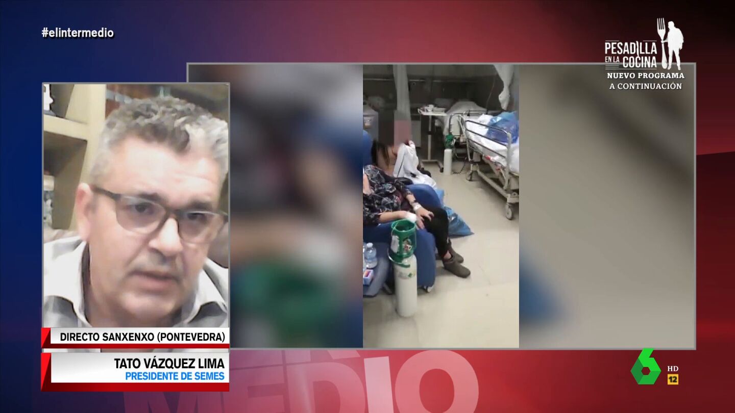 El Dr. Vázquez Lima, presidente de la Sociedad Española de Medicina de Urgencias y Emergencias (SEMES), conecta con El Intermedio para explicar en medio de la crisis sanitaria que está atravesando el país la crítica situación en la que estamos: "Esto dificulta nuestro trabajo y condiciona la dignidad e intimidad de los pacientes que requieren hospitalización".