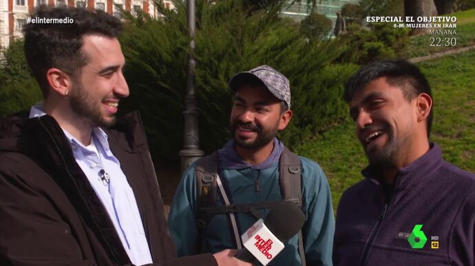 El reportero de El Intermedio también conversa con una pareja de brasileños que destacan de su visita a España "el partido del Barcelona" y una turista argentina que asegura que "los españoles son un poco gritones" y que "Barcelona huele muy mal": "Enfrente de la Pedrera con olor a mierda", explica.