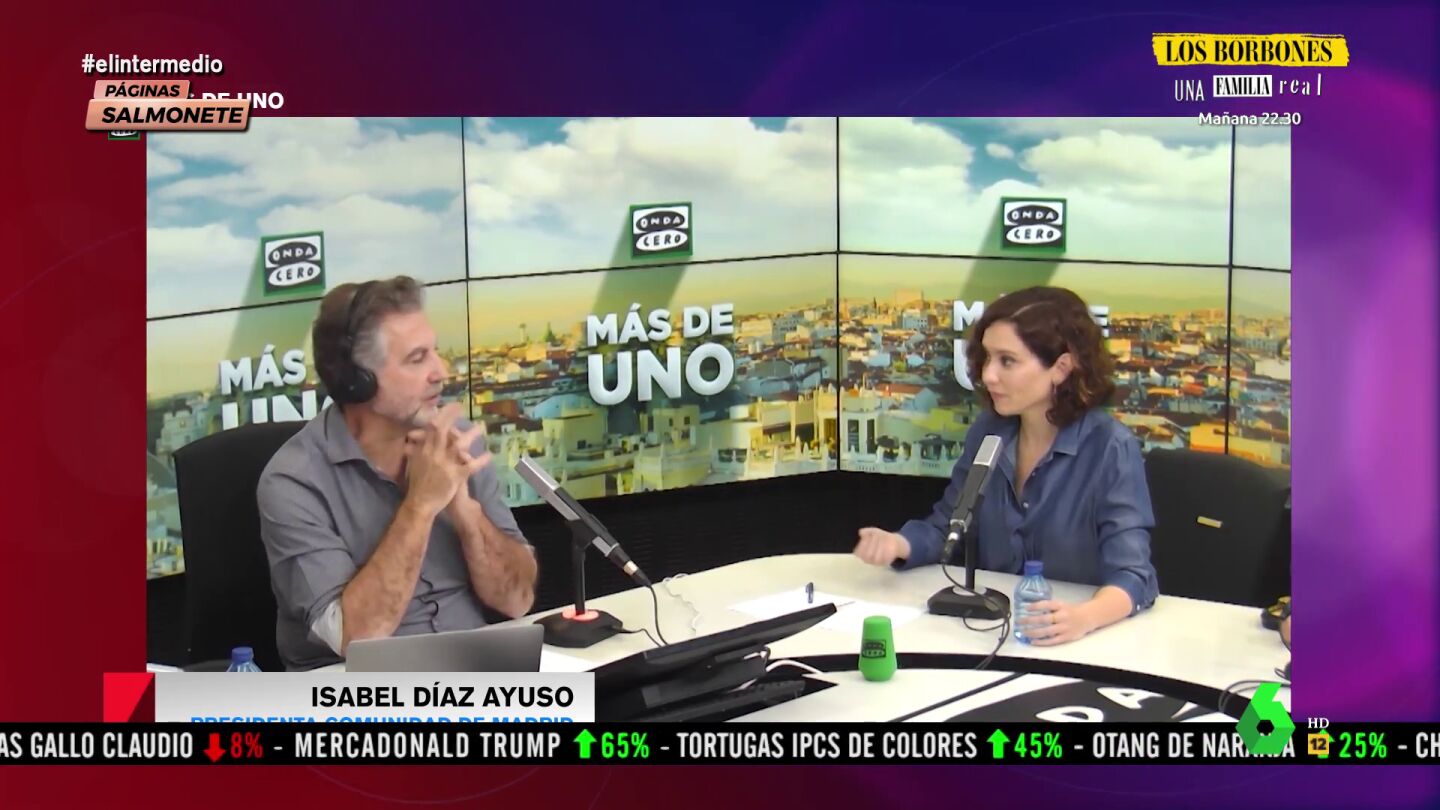 En una entrevista con Carlos Alsina en Onda Cero aseguró que el Gobierno madrileño está "viendo a ver si lo hace a través de la inflación o del IPC". Unas palabras que han sorprendido a Dani Mateo: "Cuando hablamos de inflación o de IPC hablamos prácticamente de lo mismo, es como Papa Noel o Santa Claus", ha evidenciado. Puedes escuchar las explicaciones posteriores de la presidenta de la Comunidad de Madrid en el vídeo principal de esta noticia.