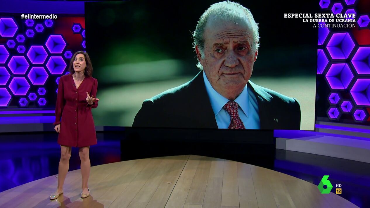 La colaboradora de El Intermedio cree que todos los españoles le deberían pedir disculpas al padre de Felipe VI porque ha sido atacado por "investigaciones sin fundamento y mujeres malvadas". "Con lo mal que se vive en Abu Dabi. No hagáis caso a lo que dice la izquierda de que vive en un resort de lujo porque eso no es así", ha señalado.
