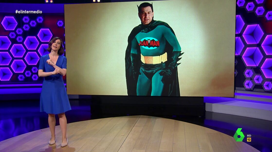 "¡Es un superhéroe, Juanman!", resalta la colaboradora de El Intermedio, que destaca que "ha conseguido arrasar en Andalucía con un superpoder, ser un tipo normal": "Mientras el resto de políticos crispan e insultas, Juanman se mantiene zen, con las pulsaciones al mínimo". Además, destaca que hasta hace nada Juanman tenía un Robin, "Juan Marín, pero recientemente ha ganado un superpoder, la invisibilidad". Y no solo eso, Cristina Gallego repasa todos los talentos del superhéroe de la normalidad Juanman, que saca a relucir cada vez que pisa la calle: "Juanman se acerca a sus votantes como si fuera el día más feliz de su vida". "Es el político que ha demostrado que para sacar una mayoría absoluta histórica solo hace falta ser normal, ni siquiera le hace falta que su gestión sea la mejor o ser el que más invierte en Sanidad, ya que la comunidad presidida por Juanman tiene el segundo sistema con la peor calidad del país", afirma Gallego.