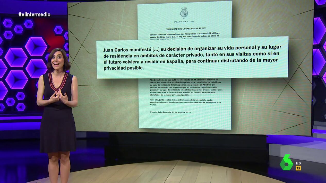 Gracias a su "bilingüismo en lenguaje borbónico" Cristina Gallego traduce a la perfección en el plató de El Intermedio el comunicado de la Casa Real sobre el encuentro entre el rey Felipe VI y su padre.