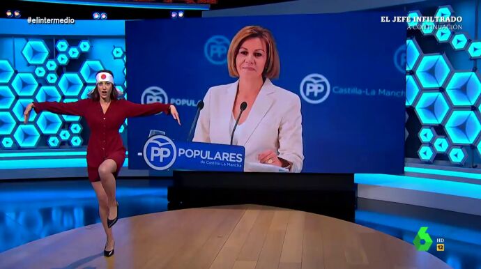 Durante esta temporada de El Intermedio, Cristina Gallego analizó a muchos políticos como es el caso de María Dolores de Cospedal, quien "ha defendido al PP con su vida si es necesario". Por eso, la colaboradora la califica de "la kamikaze del PP" porque es "una soldado que ha defendido a su partido en todas las batallas cueste lo que cueste hasta que se sentado en el banquillo".