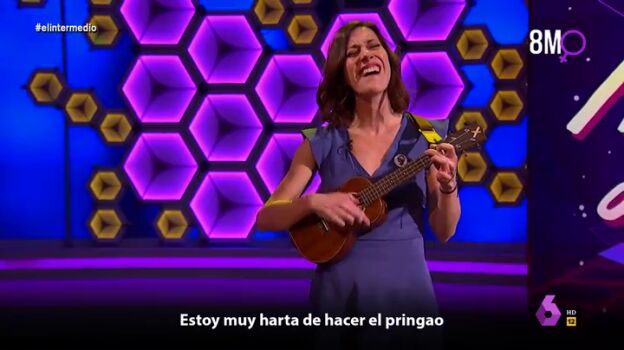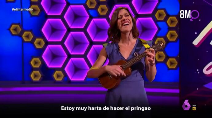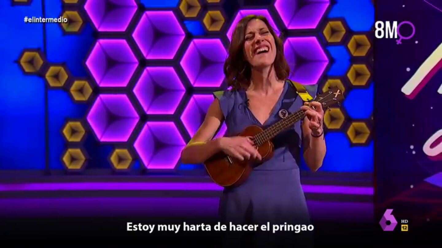 "Oye tú, me pagan la mitad, pero hago lo mismo ¿te parece normal?", comienza cantando la joven al ritmo de su ukelele. Gallego continúa su emotiva actuación denunciando la brecha salarial y del ataque al feminismo: "De machirulos ya me he 'cansao', estoy muy harta de hacer el 'pringao', ya no aguanto ni una más, y es que hoy no me voy a callar. Feminazi, puta, radical... hasta el coño estoy de tu violencia verbal". Puedes ver en el vídeo principal de esta noticia su himno feminista al completo.
