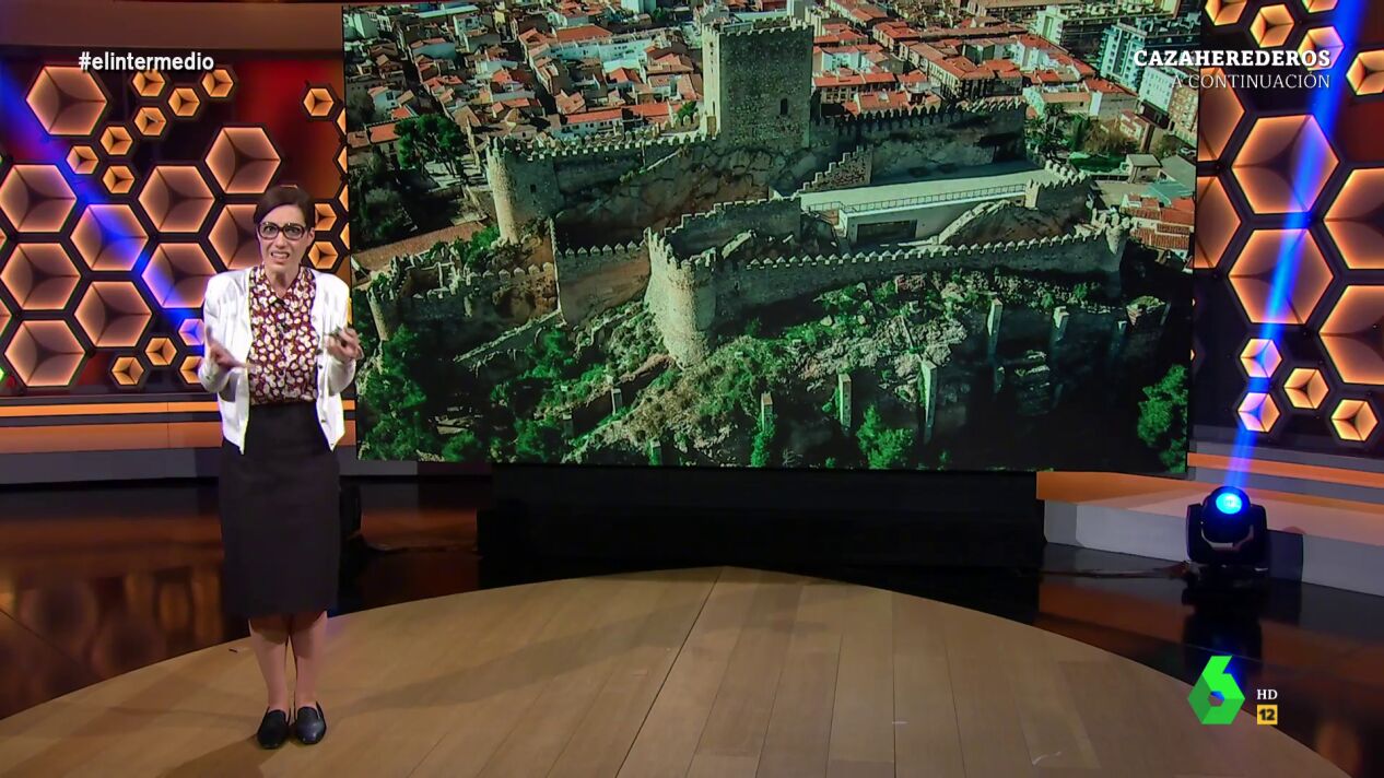 "Cuatro esquinitas tiene tu casa, cuatro escrituras que te la guardan", reza Cristina Gallego en el plató de El Intermedio, donde se convierte en la ama de llaves de la Iglesia española: "Aquí todos me conocen como la 'hermana Pepita, propiedad que ve, propiedad que te quita'". "Aquí tengo algunas de las llaves de los inmuebles de la Iglesia, no todas porque he perdido la cuenta", afirma Gallego, que reflexiona: "Si en diez años la Iglesia se hizo con 35.000, imaginaos desde la Edad Media".