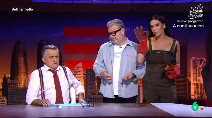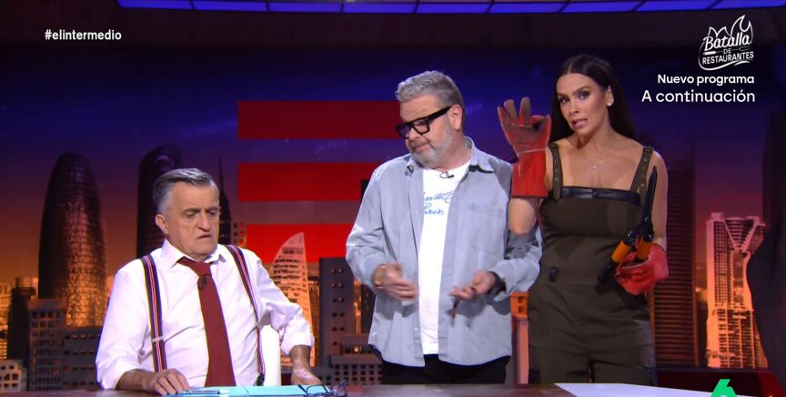 El Gran Wyoming se dispone a dar la hora en El Intermedio cuando Alberto Chicote irrumpe en el plató. "¿Qué hora es? ¿Tú tienes el reloj puesto en hora? Déjame que lo vea... estoy poniendo todos los relojes de los españoles en hora. Llevo ya 30 millones que luego se me despistan con las campanadas", le explica el presentador de Batalla de Restaurantes.