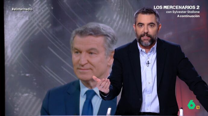 "Te voy a presentar a un cinéfilo de verdad", le dice Dani Mateo a El Gran Wyoming en El Intermedio. El humorista rescata unas recientes declaraciones de Alberto Núñez Feijóo del archivo de Atresmedia para recordar lo que el dirigente del Partido Popular dijo en Espejo Público sobre Santiago Segura, Torrente, Amenábar y Almodóvar.