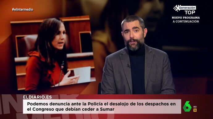 Dani Mateo expone el El Intermedio cual ha sido la verdadera tensión que se ha vivido en el Congreso de los Diputados. Como cuenta el colaborador, "ha estado protagonizada por los diputados de Podemos". Mateo expone que Podemos ha denunciado a Sumar, e incluso ha pedido amparo en el Congreso, por sacar sus cosas del despacho y dejarlas tiradas por los pasillos.