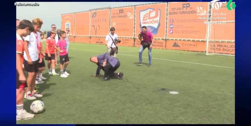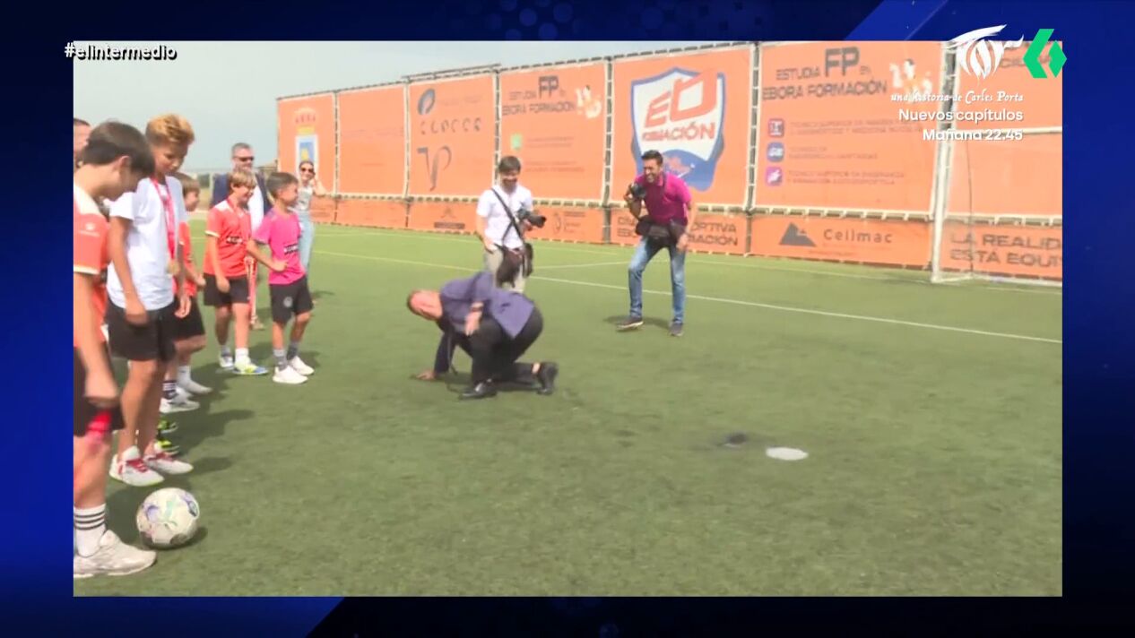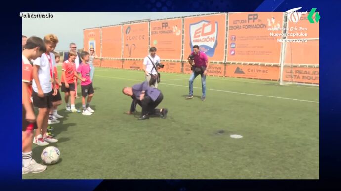 El presidente de Castilla-La Mancha ha acudido a la inaguración de un centro deportivo y no ha dudado en mostrar sus habilidades con el balón. Pero, su lanzamiento ha terminado con él tirado en el cesped.