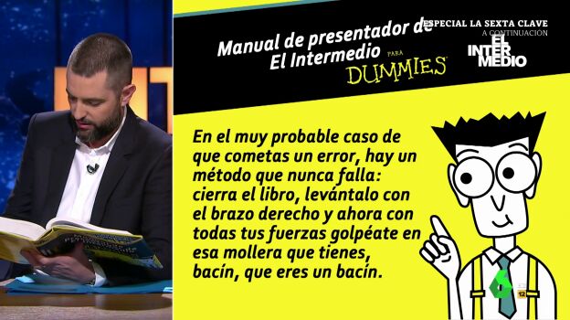 En este vídeo, el sustituto del presentador de El Intermedio se ve obligado a tirar del 'manual para dummies' que le ha dejado Wyoming para afrontar un nuevo roce entre PSOE y Unidas Podemos.