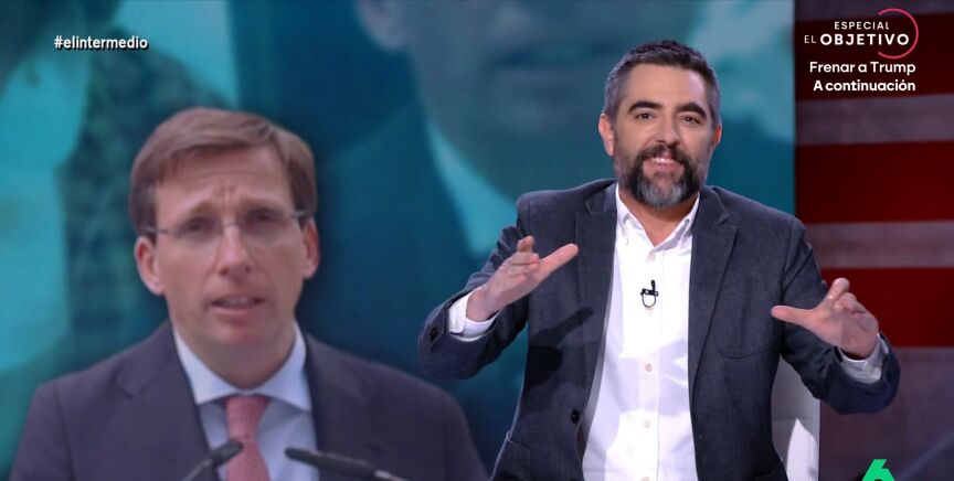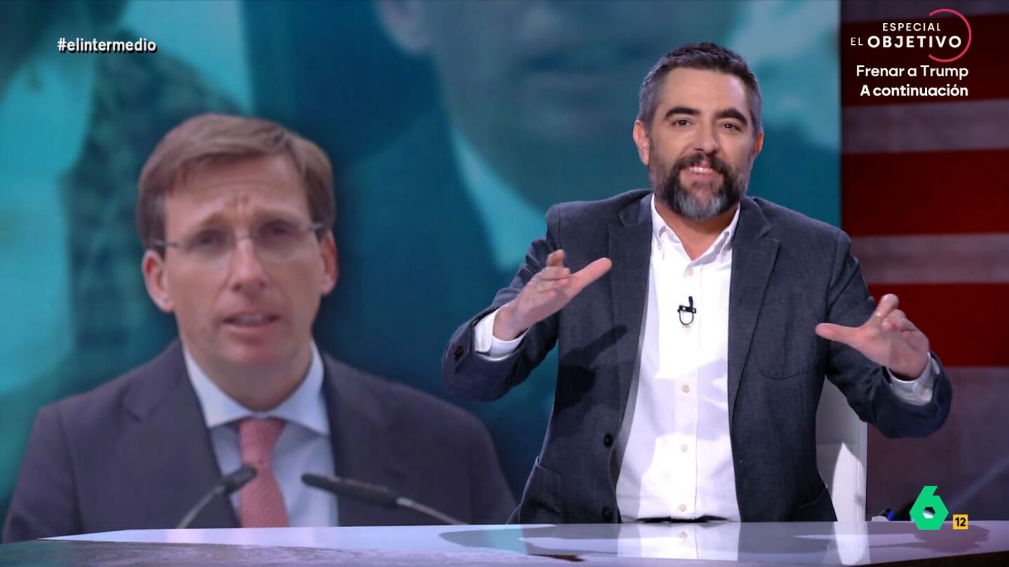 Dani Mateo reacciona en este vídeo al momento en el que José Luis Martínez-Almeida recibe una cagada de paloma durante un discurso. "La paloma no le ha cagado, le ha soltado un dron", apunta por su parte Wyoming.