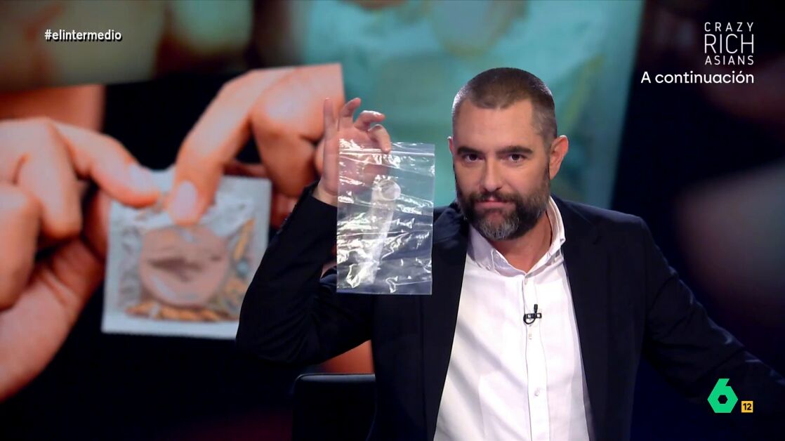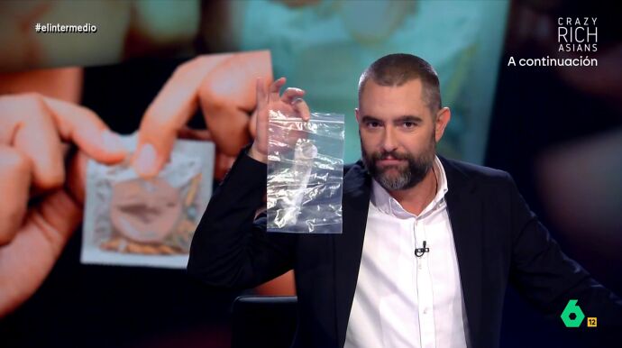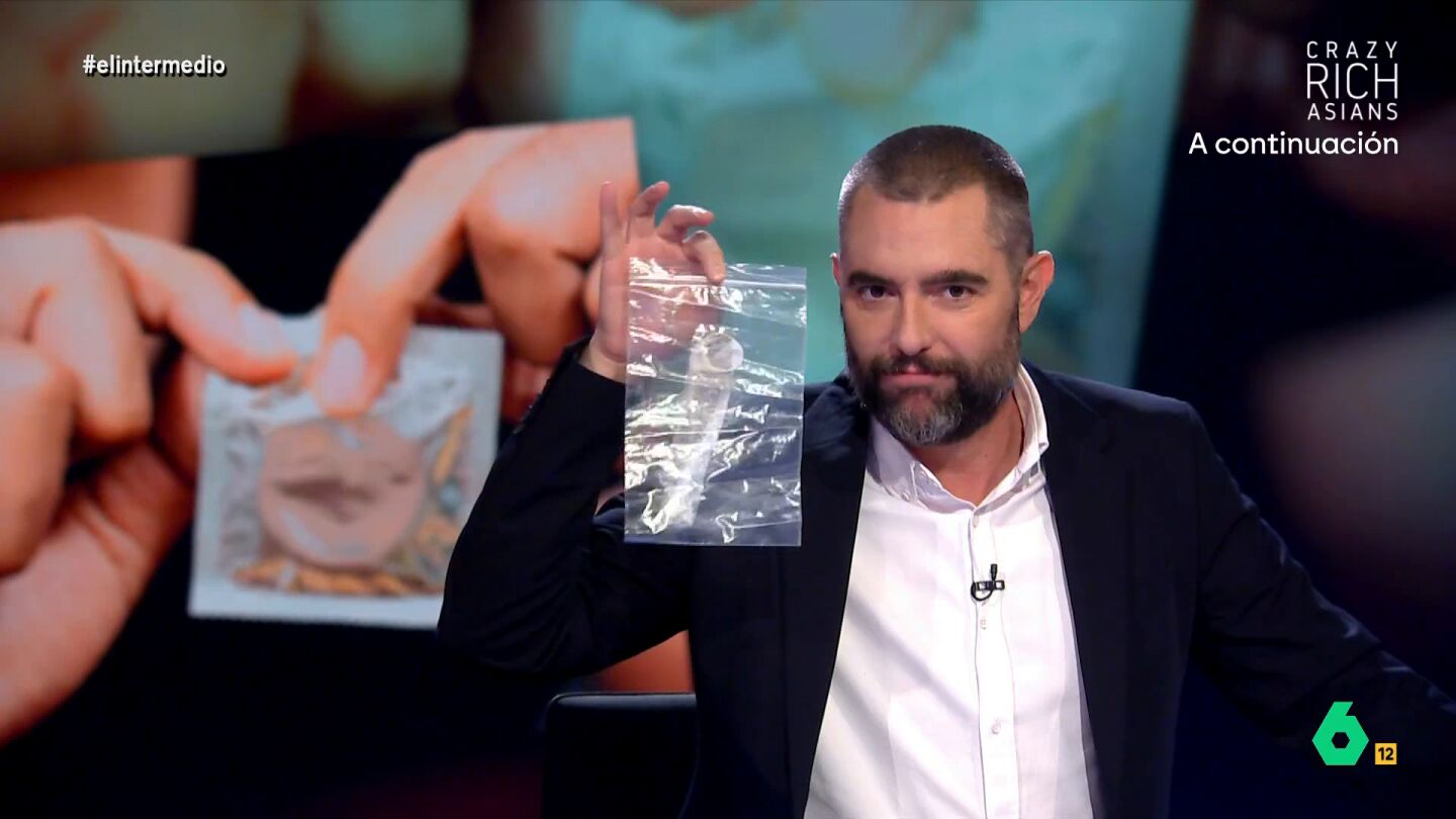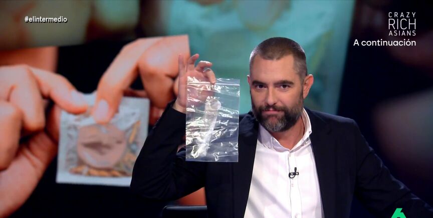 Dani Mateo irrumpe en el plató de El Intermedio con una prueba entre sus manos que deja a Wyoming con la boca abierta. El humorista porta en una bolsa de plástico el preservativo que se ha encontrado esta mañana los políticos vascos en el Parlamento.