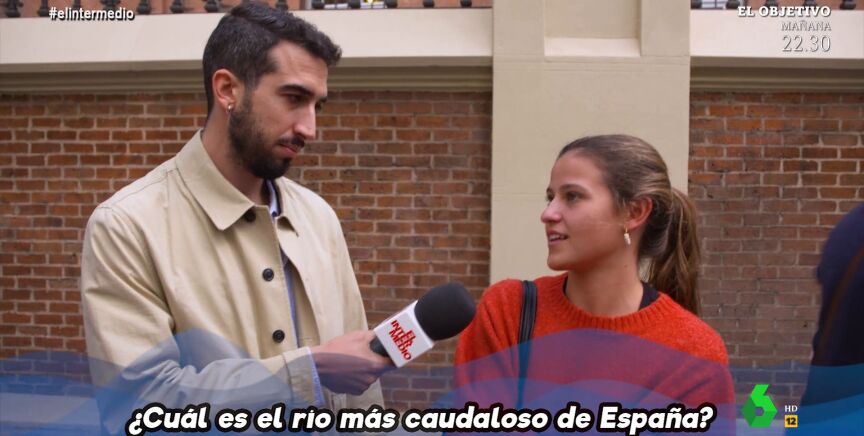 De este modo les ha planteado cuestiones como las provincias por las que pasa el Júcar, el río español que desemboca en Oporto, las provincias con las que limita Granada o dónde nace el río Tajo. Durante 'este examen', una joven madrileña da a Isma Juárez tres opciones para el río más caudaloso de España: "Manzanares, Danubio o Duero, ¿es el Danubio?". "Sería el Danubio si viviéramos en el Imperio español del siglo XV", le responde el reportero en el vídeo sobre estas líneas.