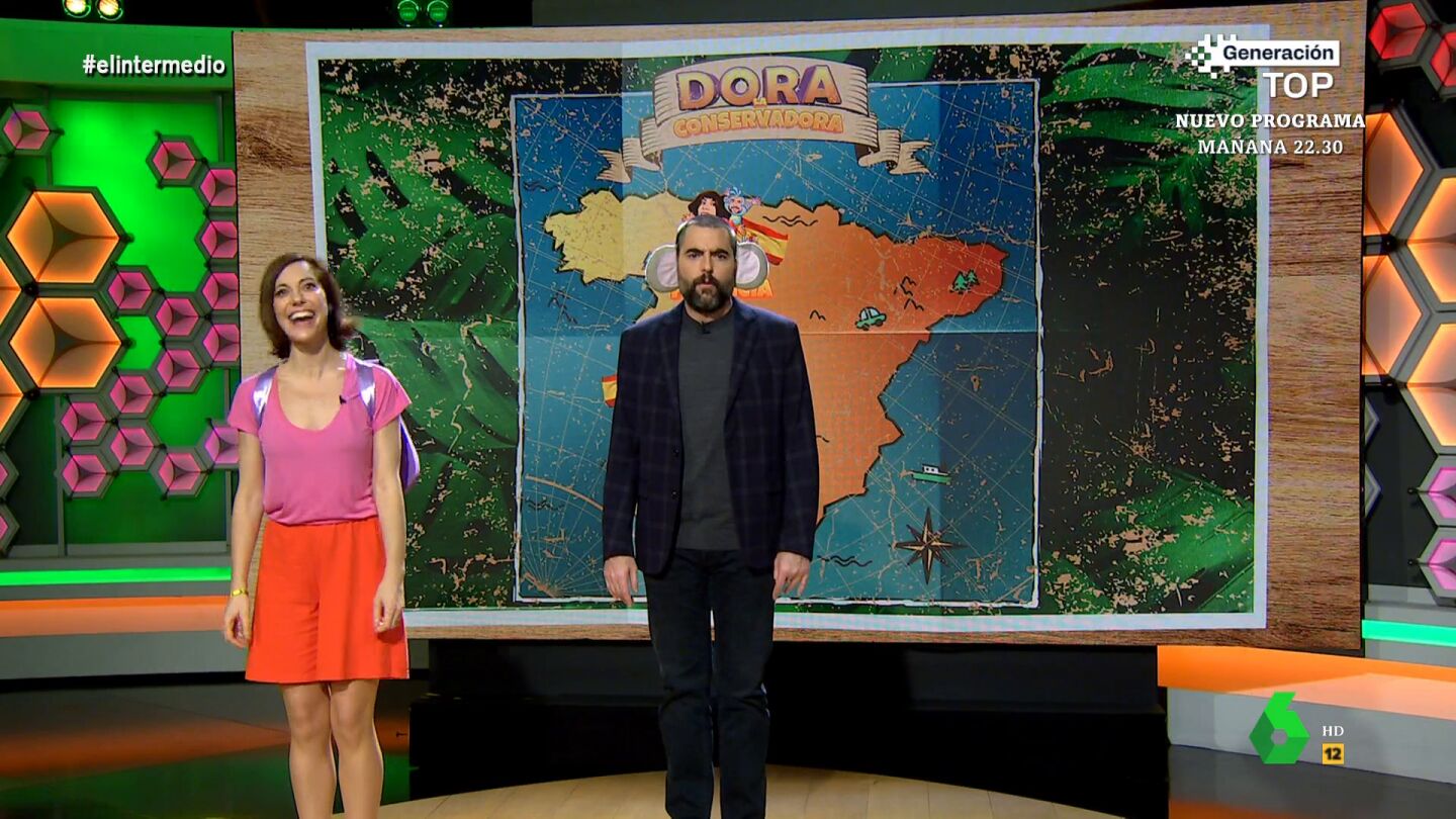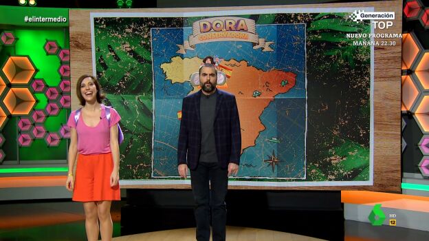 Cristina Gallego y Dani Mateo, interpretan a 'Dora la conservadora' y a su inseparable amigo 'Botas' para recorrer varios puntos de nuestra geografía mientras repasan la actualidad política de ciudades como Mérida, Ripoll o Palencia.