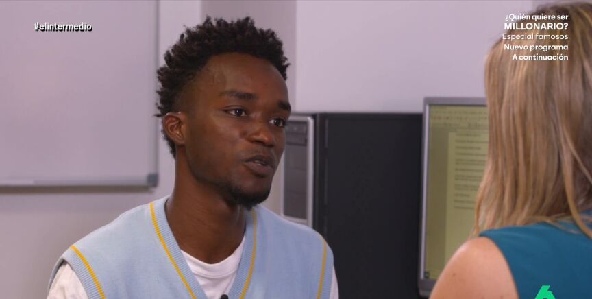 En este vídeo de El Intermedio, Andrea Ropero entrevista a Cheikh Ahmed Tidiane, un joven que lleva en España apenas tres meses. "Salí de mi país para venir a Europa para solicitar la protección internacional", relata.