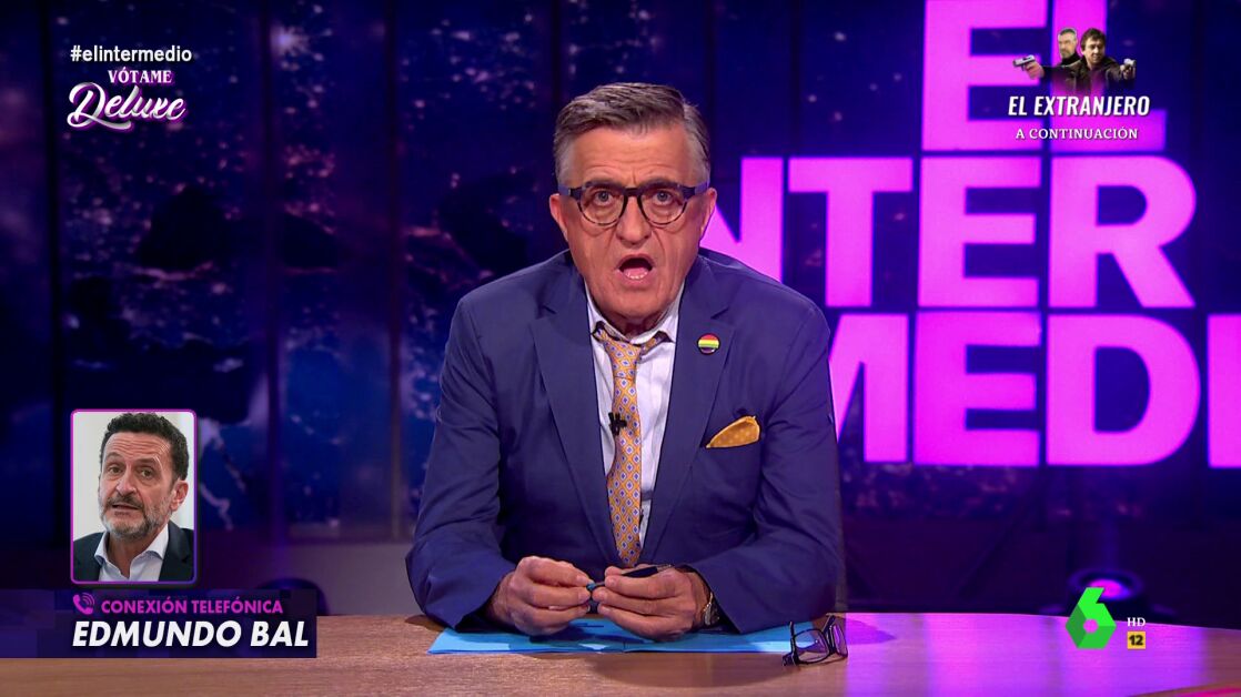 "Este hombre no puede más. Se le está cayendo el mundo encima", comenta Wyo Javier con Dani Mateomoros y Sandrota Corredera. Es en ese instante cuando 'Edmundo Bal' conecta con Vótame Deluxe: "Reíros de mí, del único político que queda de centro", carga también contra los integrantes de la mesa.