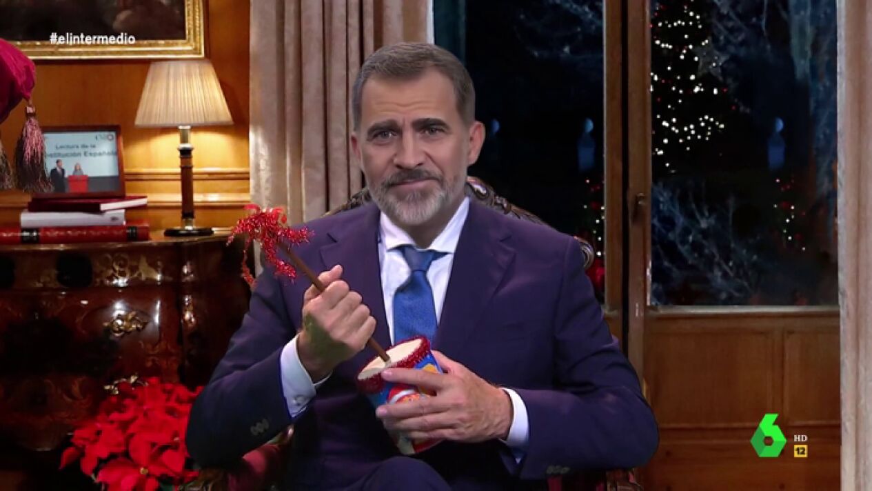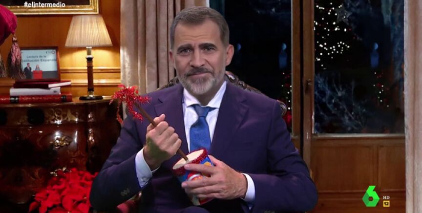 El Gran Wyoming se mete en la piel del rey Felipe VI más feminista y 'marchoso' de España, que incluso se atreve a cantar su propio 'himno navideño' acompañado de una magistral interpretación con una zambomba.