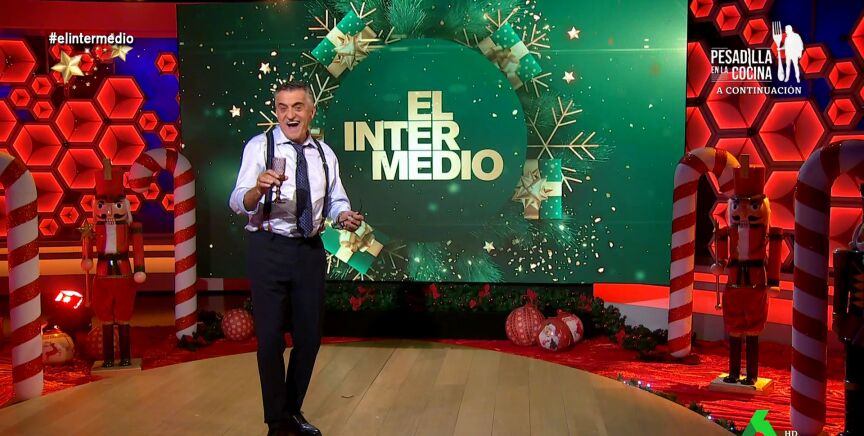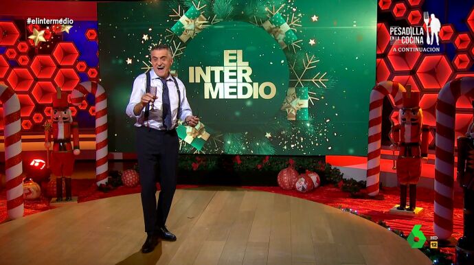 "Sí, no solo ha llegado la Navidad, ha llegado algo que hace más ilusión a una gran parte de la población española, ¡el último programa de El Intermedio!", arranca El Gran Wyoming el programa, que destaca que da por cerrado 2022, un año en el que ha habido "crispación política, desastres naturales, guerras...".