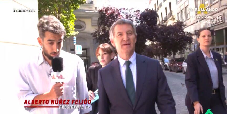 Antes de entrar, el reportero de El Intermedio ha esperado en la calle la llegada de Alberto Núñez Feijóo. "Creemos que va a venir caminando, básicamente porque sabemos que está en el Congreso", señala Juárez, que apunta que el edificio se encontraba al final de la calle. "Si viene en coche… a mí me extrañaría mucho que él, como líder del Partido Popular, no se preocupara por el medio ambiente", añade con humor.