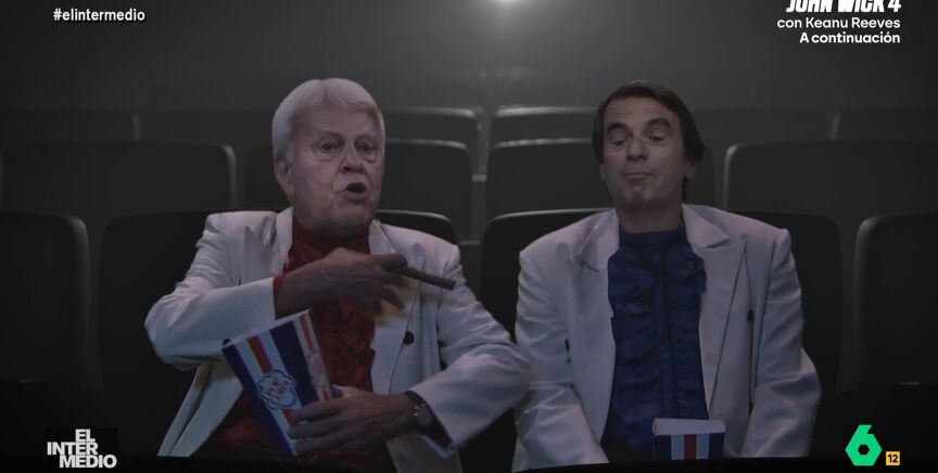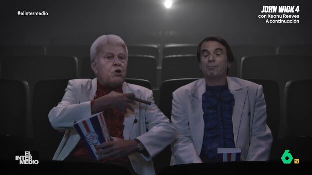 "Qué gusto ir al cine con la tarjeta dorada, lo baratito que sale", afirma 'Aznarito'. 'Felipón' confiesa que no va mucho al cine ya que prefiere ver películas en su casa. "Tengo una pantalla más grande que el Bernabéu", explica.