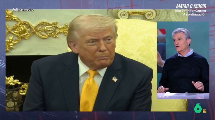 Guillermo Fesser analiza en el plató de El Intermedio la situación de EEUU con la guerra de Irán. "Donald Trump está jugando porque tiene una mentalidad de cinco años y se cree que la guerra es un videojuego", afirma el periodista en el vídeo que hay sobre estas líneas, donde explica: "Su amiguito Netanyahu le dijo que fuera para ahí que lo iban a pasar fenomenal y él ha ido y se ha metido en un lío".