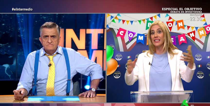Se cumple el primer año de presidencia de la italiana Giorgia Meloni. Para hacer un balance de su primer año en el cargo El Intermedio ha podido contar con Cristina Gallego y su particular versión de la presidenta italiana.