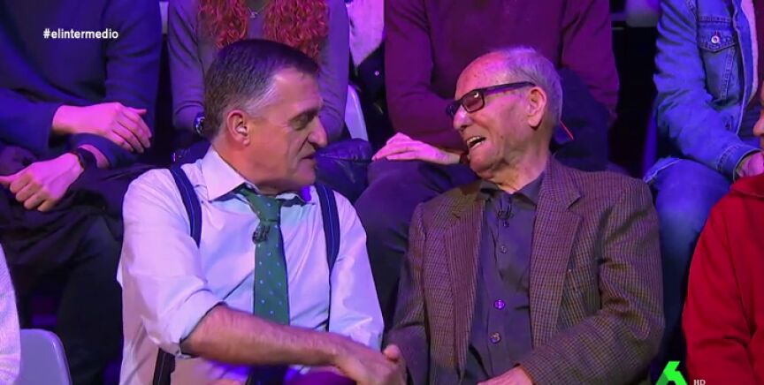 A sus 99 años, Agustín López cumplió la petición que le había realizado a Gonzo en su entrevista: conocer "al de los tirantes", a Sandra Sabatés y a Thais Villas. Puedes ver su encuentro en este vídeo.